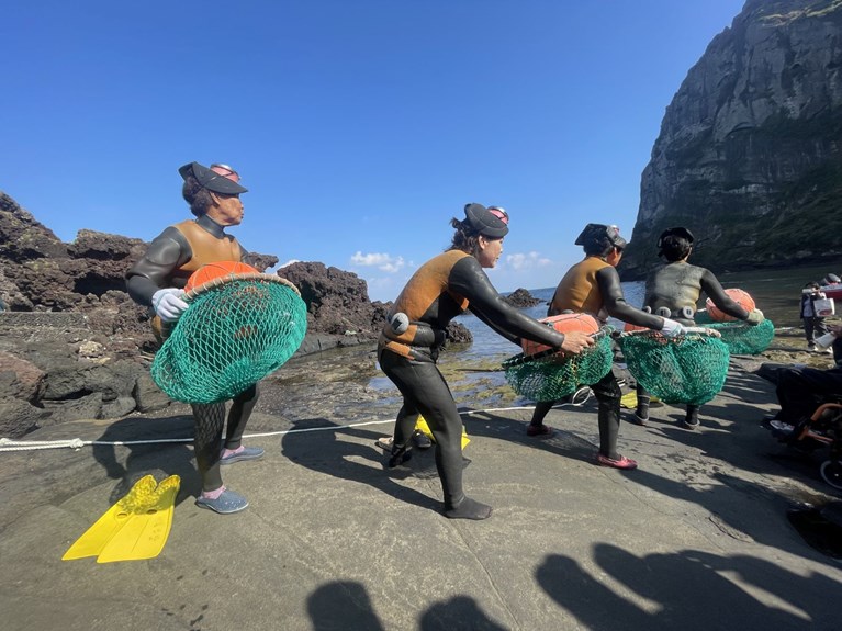 Güney Kore'nin Jeju Adası'nda yaşayan ve "deniz kızı" anlamına gelen "Haenyeo" denilen 80 yaş üstü kadınlar, su altından çıkardıkları ürünleri satarak ailelerinin geçimlerini sağlıyor. Haenyeolar,UNESCO Dünya Mirası Listesi'nde de yer alıyor.
