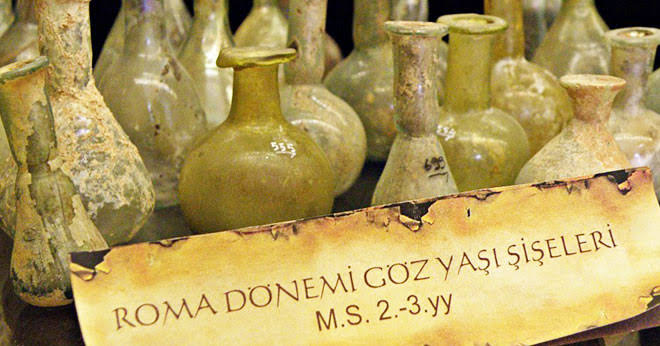 Farklı dönemlerde kadınların sevgilerini ve aşklarını anlatmada kullandıkları gözyaşı şişelerine akıtılan gözyaşları, aşkın geçmişte nasıl yaşandığına dair ipuçları da veriyor.