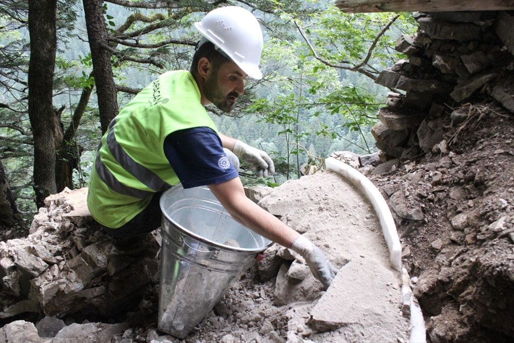| | Sümela Manastırı kayalıklarındaki 'saklı şapeller' ziyarete açılacak Sümela Manastırı'nda restorasyon sırasında ortaya çıkarılan iki şapel, Kültür ve Turizm Bakanlığı'nca gerçekleştirilecek restorasyonun ardından ziyarete açılacak.  Maçka ilçesindeki Karadağ'ın Altındere Vadisi'ne bakan eteğinde yaklaşık 300 metre yükseklikte inşa edilen Sümela Manastırı'nda kaya düşme riskine karşı 2015'te başlatılan restorasyon çalışmaları sırasında iki şapel bulundu.  Restorasyon ekibince "Mezarlık şapeli" ve "Saklı şapel" olarak nitelendirilen şapeller, Trabzon Kültür Varlıklarını Koruma Bölge Kurulu tarafından 2018'de "Korunması gerekli birinci grup kültür varlığı" olarak tescil edildi.  Daha önce hiçbir çalışma gerçekleştirilmemiş "Mezarlık şapeli" ile el değmemiş duvar resimlerine sahip "Saklı şapel" olarak nitelendirilen iki yapıda, Trabzon Müze Müdürlüğü başkanlığı ve Necmettin Erbakan Üniversitesi Sosyal ve Beşeri Bilimler Fakültesi Sanat Tarihi Bölümü Dr. Öğretim Üyesi İlker Mete Mimiroğlu'nun bilimsel danışmanlığında kazı ve temizlik çalışmaları gerçekleştirildi.  12. ile 19. yüzyıllara tarihlenen şapellerin restorasyonunun ardından ziyarete açılması planlanıyor. -  Trabzon Müzesi Müdürü Levent Alnıak, Türkiye'nin önemli kültür varlıklarından biri olan Sümela Manastırı'nda Kültür ve Turizm Bakanlığı tarafından temizlik ve kazı çalışmaları gerçekleştirildiğini anımsattı.  Alnıak, şunları kaydetti: "663 duvar resim parçası da Trabzon Restorasyon ve Konservasyon Bölge Laboratuvarı uzmanları eşliğinde envanterlenerek koruma altına alınmıştır. İleriki dönemlerde gerçekleşecek restorasyon çalışmaları ile bu yapıların ziyaretçilere açılması hedeflenmektedir."  SÜMELA MANASTIRI Karadağ'ın eteklerinde vadiden yaklaşık 300 metre yükseklikteki ormanlık alanda bulunan Sümela Manastırı, halk arasında "Meryem Ana" adı ile biliniyor. Kaynaklara göre, Sümela Manastırı'nın 18. yüzyılda birçok bölümü yenilendi, bazı duvarları fresklerle süslendi.  19. yüzyılda büyük binaların eklenmesiyle manastır ihtişamlı bir görünüm kazandı. Bu dönemde son şeklini alan manastır, pek çok yabancı seyyahın ziyaret ettiği, yazılarına konu ettiği bir yer haline geldi. Sümela Manastırı, ana kaya kilisesi, birkaç şapel, mutfak, öğrenci odaları, misafirhane, kütüphane ile kutsal ayazma gibi bölümlerden oluşuyor. Alıntıdır. |