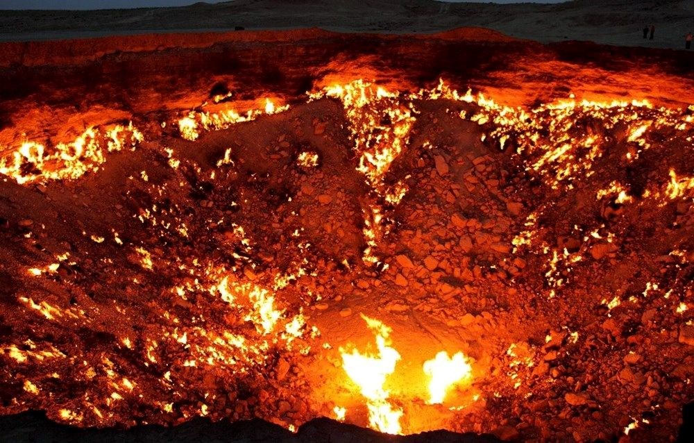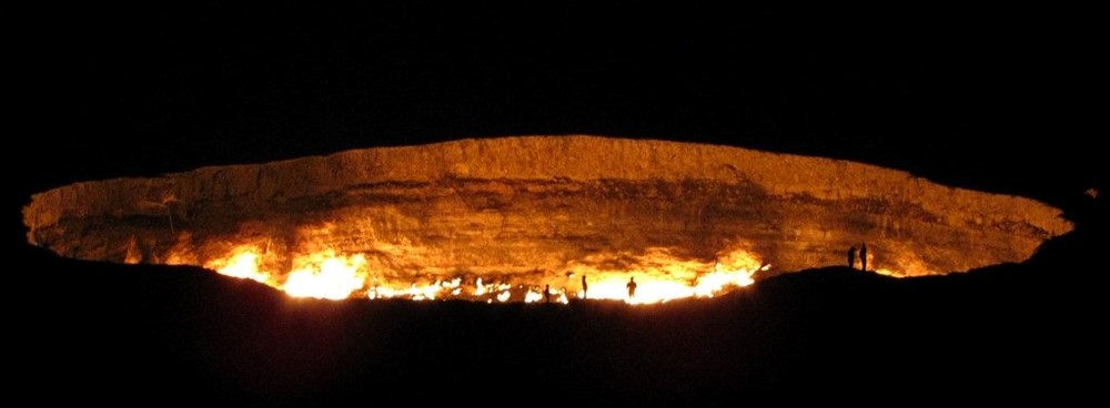 | | Türkmenistan'da Cehennem Kapısı kapanıyor Türkmenistan'da Cehennem Kapısı kapanıyor Türkmenistan'da bulunan ve "Cehennem Kapısı" olarak bilinen ve 1971'den bu yana yanmakta olan ateşin söndürülmesi talimatı verildi.  Talimat Türkmenistan Devlet Başkanı Gurbanguli Berdimuhamedov'dan geldi.  Devlet Başkanı, Derveze gaz kraterinde 1971'den bu yana yanan çukurun,, hem çevreyi hem de civarda yaşayanların sağlığını olumsuz etkilendiğini söyledi.  Berdimuhammedov, bilim insanlarını biraraya getirerek gerekirse yabancı uzmanlardan da destek alarak yangını söndürmek için yollar arama talimatı verdi.  Sovyetler Birliği döneminde jeologların çalışması sırasında yanlışlıkla oluşa,, yaklaşık 60 metre çapında ve 20 metre derinliğindeki kraterdeki ateş 1971'den bu yana aktif durumda.  Cehennem Kapısı diye de bilinen krater, turistlerin de ilgi odağı durumunda.            |