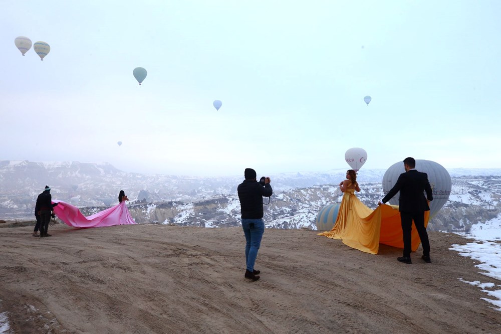 | | Sevgililer Günü'nde çiftler Kapadokya'ya akın etti Sevgililer Günü'nde çiftler Kapadokya'ya akın etti Doğal, tarihi ve kültürel güzellikleriyle tanınan Kapadokya'yı ziyaret eden çiftler, 14 Şubat Sevgililer Günü dolayısıyla sıcak hava balonlarının oluşturduğu manzarada fotoğraf çektirdi.  Bölgedeki yerli bir firma tarafından üretilen kalp figürlü sıcak hava balonunun da uçuş gerçekleştirdiği Kapadokya'da, turistlerin kimisi balon ve peribacalarının sunduğu görsel güzelliği kendilerine dekor yaptı, kimisi de kiraladığı vince salıncak kurarak farklı kostümlerle güne özel fotoğraflar için objektif karşısına geçti. Sabahın ilk ışıkları ile balonlar görevlilerce uçuş için hazırlanırken, yerli ve yabancı çiftler ise fotoğraf çekimi için vadi yamaçlarında yer bulma telaşına girdi.  Gün doğumu ile gökyüzüne yükselen balonların renk kattığı manzara, çiftler için doğal stüdyoya dönüştü.  Cappadocia Ezair Balloons Yönetim Kurulu Başkanı Bilge Ezel, gazetecilere, kalp figürlü balonun sadece özel günlerde uçuş gerçekleştirdiğini söyledi.  Sevgililer Günü'nde bölgeye gelen konuklara jest amacıyla bölge semalarında kalp şeklinde balonun süzüldüğünü anlatan Ezel, tüm çiftlere ve özellikle annelere bu uçuşu hediye ettiklerini kaydetti.  Çiftlerin fotoğraf taleplerini karşılayan fotoğraf sanatçısı Caner Yalçın da Sevgililer Günü dolayısıyla işlerinde hareketlilik yaşandığını ifade ederek, "Kapadokya, doğal güzellikleri ile ünlü bir bölge. Burada balonların oluşturduğu manzarada fotoğraf çektirmek isteyenlerin taleplerine yetişmeye çalışıyoruz." diye konuştu.  Kılıçlar Vadisi'nde fotoğraf çektiren Güney Afrikalı Zine Johnson ise coğrafi şekilleri ve rengarenk balonlarla farklı bir kimliğe sahip Kapadokya'da bulunmaktan mutlu ve heyecanlı olduğunu söyledi.         |